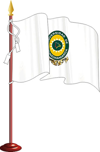 El escudo de la Universidad de Cundinamarca ubicado en el centro de la bandera simboliza el compromiso de permanecer unidos en el desarrollo académico y científico, la tradición cultural, la inclusión, la proyección social y la gobernabilidad diáfana al servicio de los semejantes.
