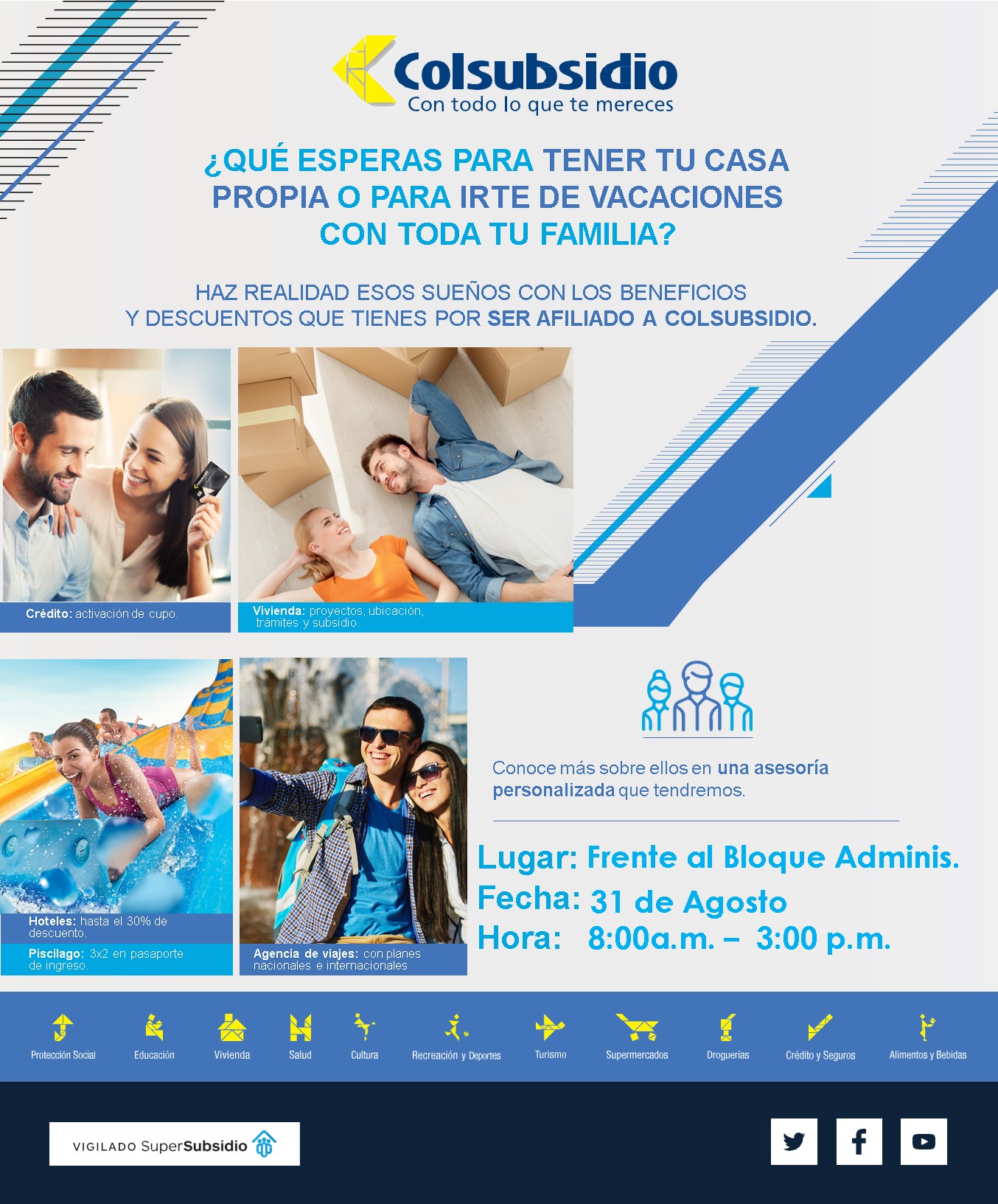 Asesoría personalizada de la Colsubsidio el próximo 31 de agosto desde las 8:00 a.m. frente al Bloque Administrativo en la Sede Fusagasugá.