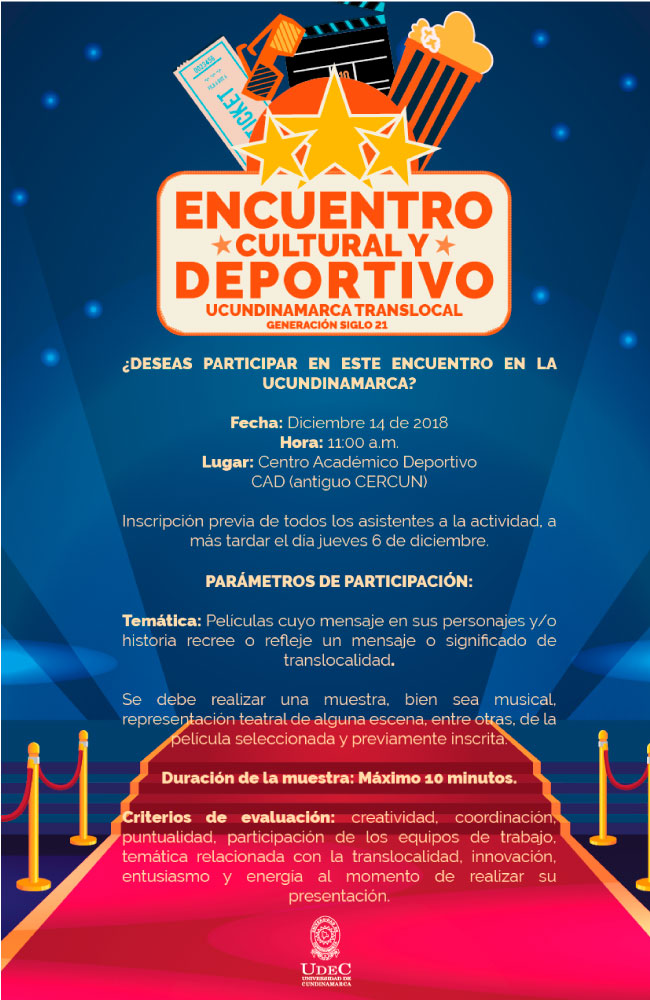 Para la inscripción del total de asistentes al encuentro se debe diligenciar el formato, el cual debe ser reenviado al correo Esta dirección de correo electrónico está siendo protegida contra los robots de spam. Necesita tener JavaScript habilitado para poder verlo. junto con la inscripción de la película (si aplica) explicado en la dinámica del encuentro.
