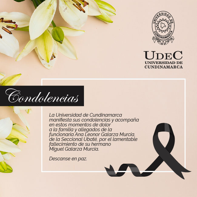 La Universidad de Cundinamarca manifiesta sus condolencias y acompaña en estos momentos de dolor a la familia y allegados de la funcionaria Ana Leonor Galarza Murcia, de la Seccional Ubaté, por el lamentable fallecimiento de su hermano Miguel Galarza Murcia.