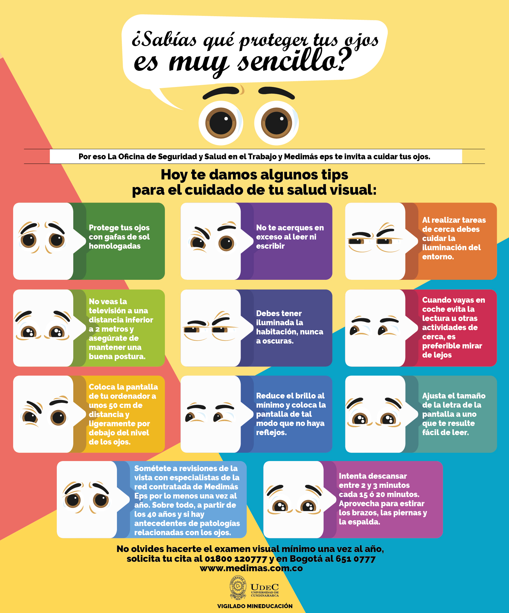 ¿Sabías que proteger tus ojos es muy sencillo? Por eso la Oficina de Seguridad y Salud en el Trabajo y Medimas EPS te invita a cuidar tus ojos.