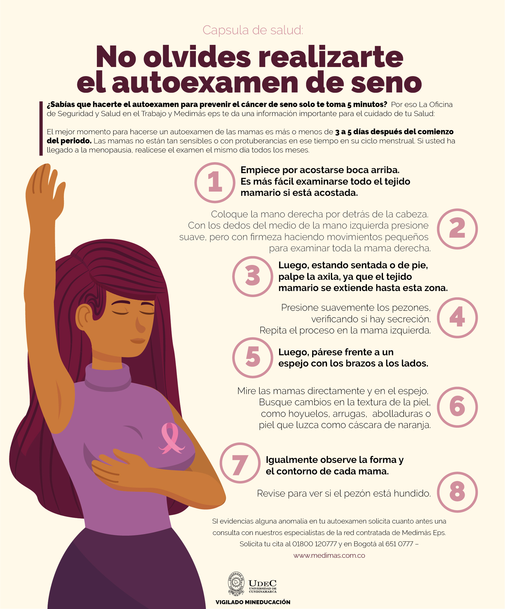 ¿Sabías que hacerte el autoexamen para prevenir el cáncer de seno solo te toma 5 minutos? Por eso, la Oficina de Seguridad y Salud en el Trabajo y Medimas EPS te da una información importante para el cuidado de tu salud: