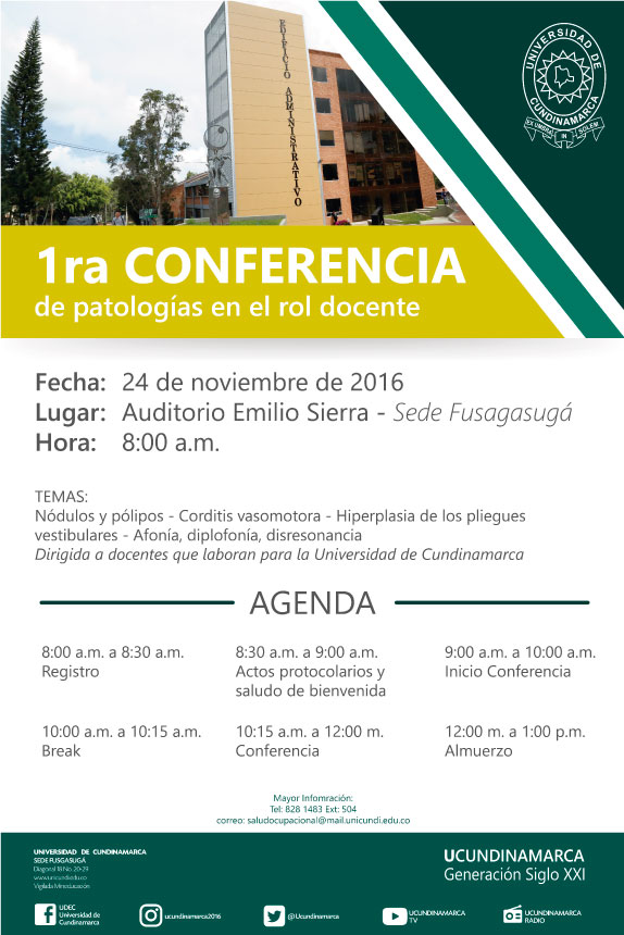 El Sistema de Gestión de Seguridad y Salud en el Trabajo invita a todos los profesores de la UCundinamarca a participar del ciclo de conferencias conscernientes al tema de la salud en la labor docente.