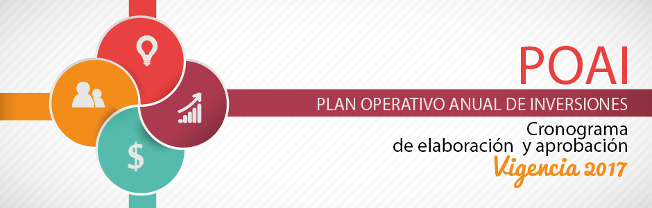 La Dirección de Planeación Institucional de la Universidad de Cundinamarca pone en conocimiento de las diferentes dependencias y áreas de la Institución el cronograma para la elaboración y aprobación del Plan Operativo Anual de Inversiones (POAI) para la vigencia 2017.