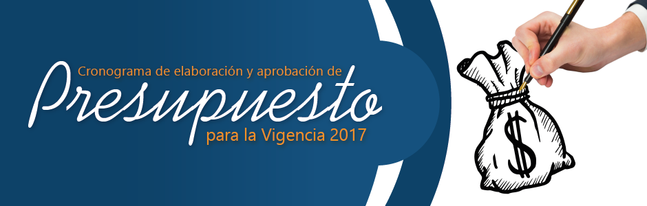 La Dirección de Planeación Institucional de la Universidad de Cundinamarca pone en conocimiento de las diferentes dependencias y áreas de la Institución el cronograma para la elaboración y aprobación del Presupuesto para la vigencia 2017.